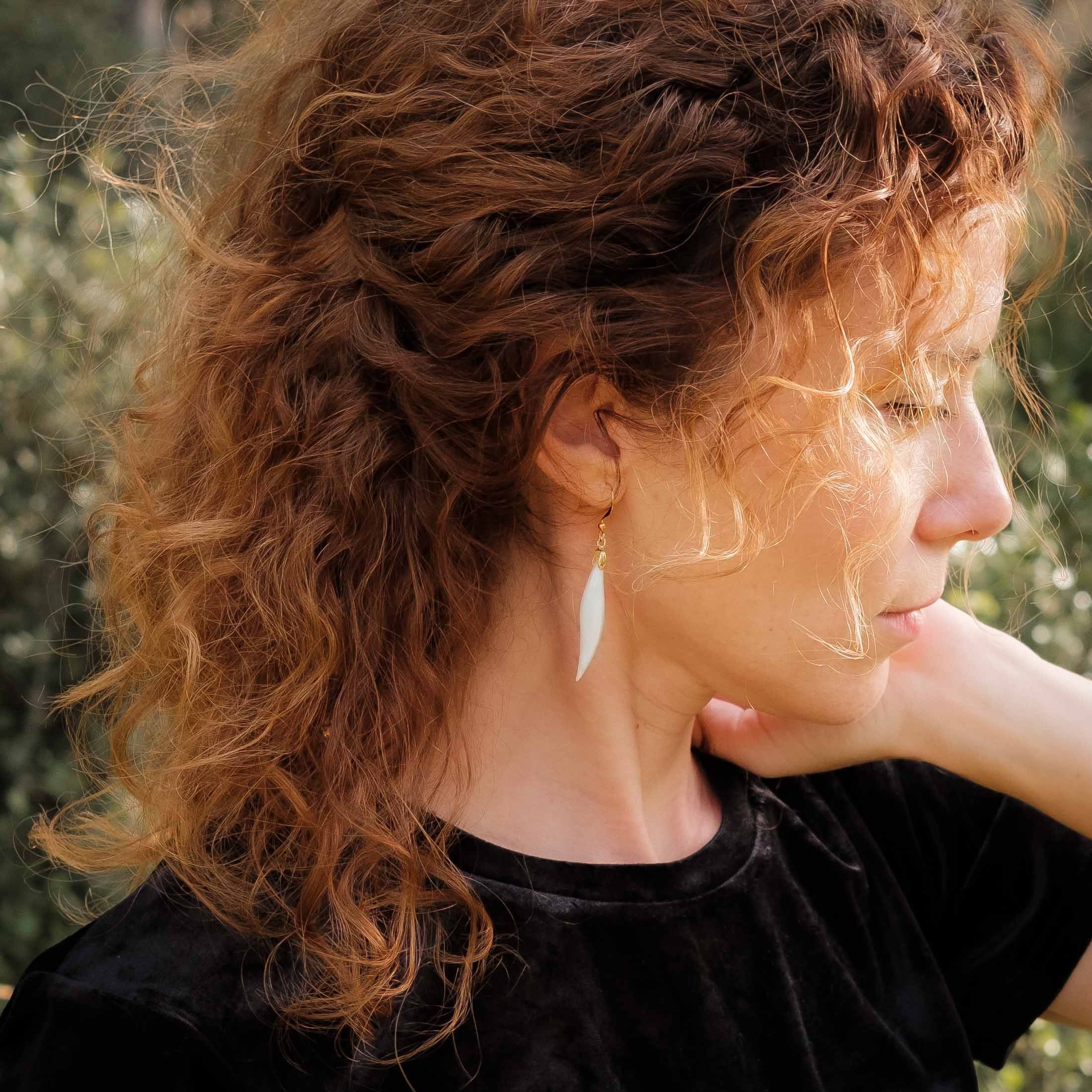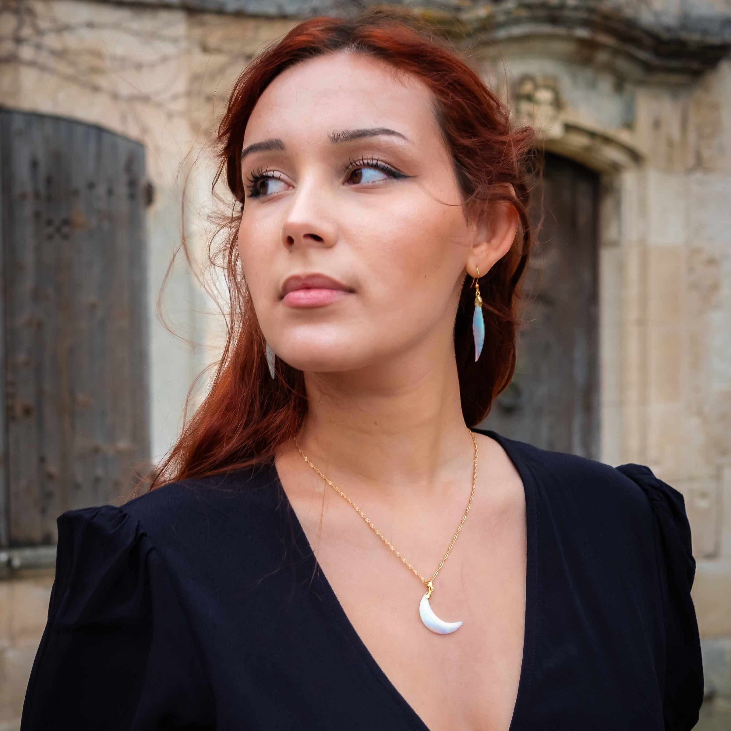 Apportez une touche d'élégance à votre style avec ces boucles d'oreilles artisanales en opale de synthèse. Leur silhouette fine en font un accessoire délicat et raffiné, parfait pour toutes les occasions. Conçues à la main avec soin, ces boucles d'oreilles captivent par leurs reflets irisés, similaires à ceux de la nacre, qui changent subtilement sous différents angles de lumière.