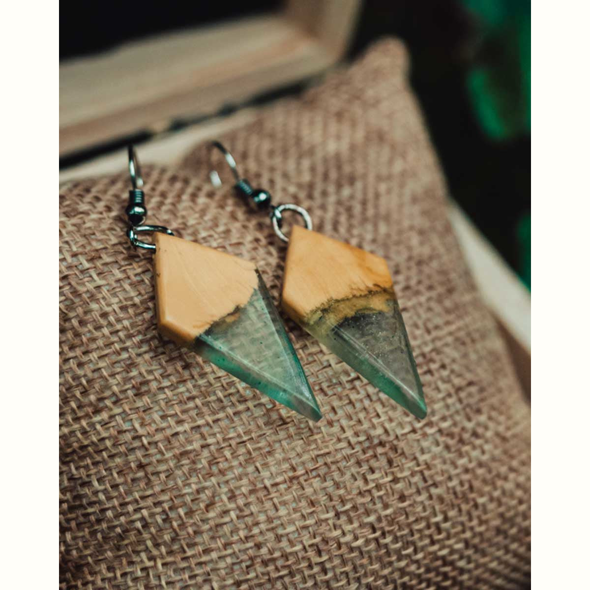 Laissez-vous envoûter par la magie naturelle de ces boucles d'oreilles, où le bois de Buis et la résine fusionnent dans une élégante danse de matière et de lumière. Sculptées en forme de losange, ces boucles captent l’essence de la nature tout en offrant une touche de mystère moderne.