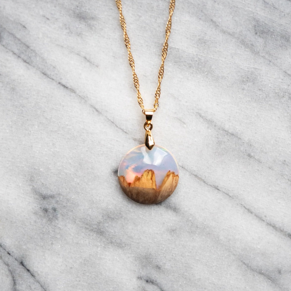 - Matériau : Bois d'eucalyptus, Opale de laboratoire et Résine
