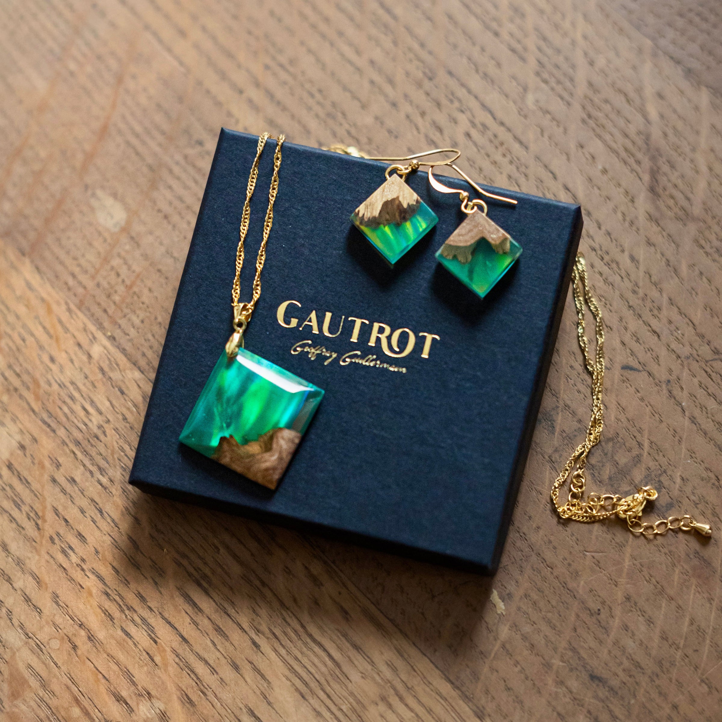 Explorez la beauté naturelle et mystérieuse de la forêt avec les boucles d'oreilles L'Orée des Bois, un bijou artisanal unique, façonné avec soin. Ces boucles d'oreilles carré marient la texture riche de la loupe d’eucalyptus et la clarté cristalline de la résine, sublimée par une opale de laboratoire aux reflets changeants de vert profond, turquoise et orangé.