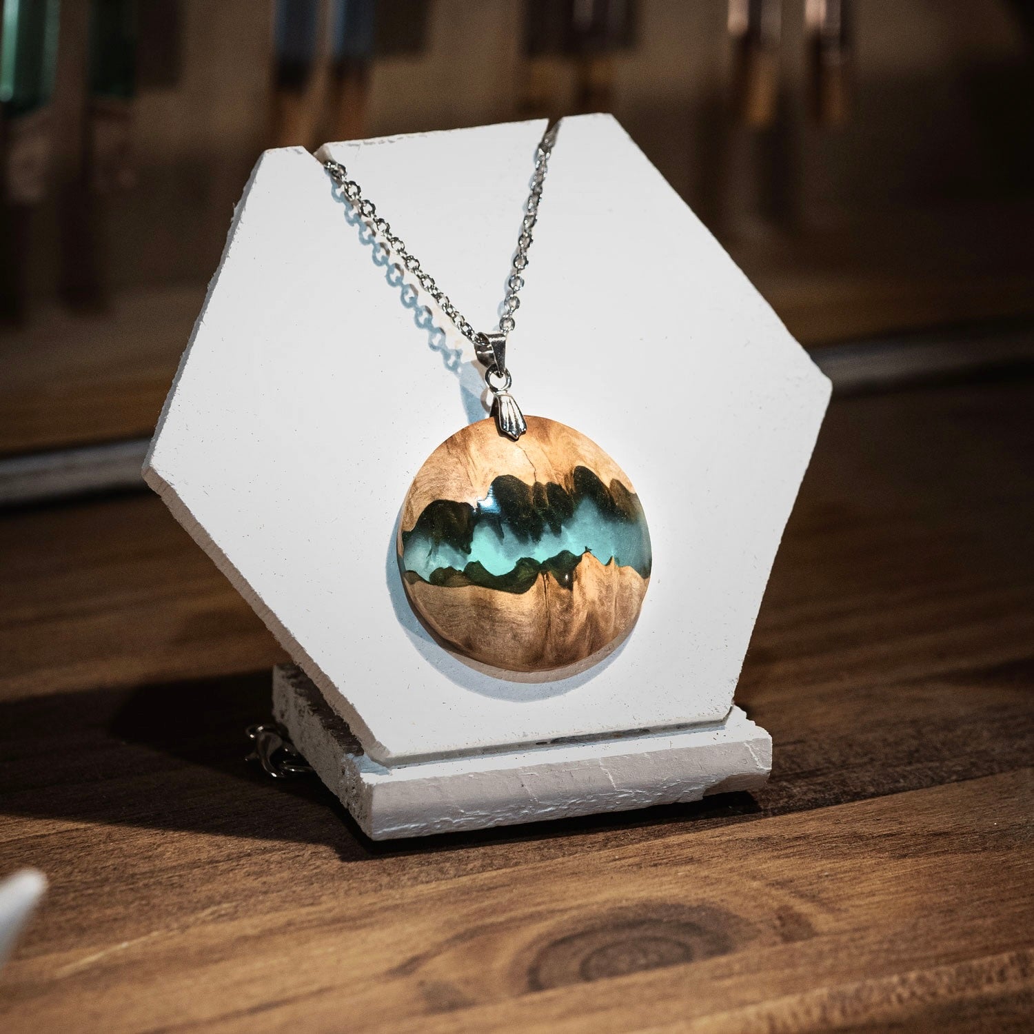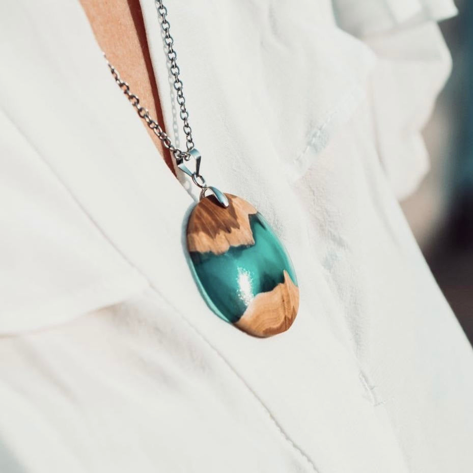 Éveillez votre style avec ce pendentif en bois précieux et résine, une création artisanale qui marie l’élégance naturelle du bois et la magie translucide de la résine turquoise. Chaque pendentif est conçu à la main avec une attention minutieuse aux détails, garantissant que vous portez une pièce vraiment unique et personnelle.
