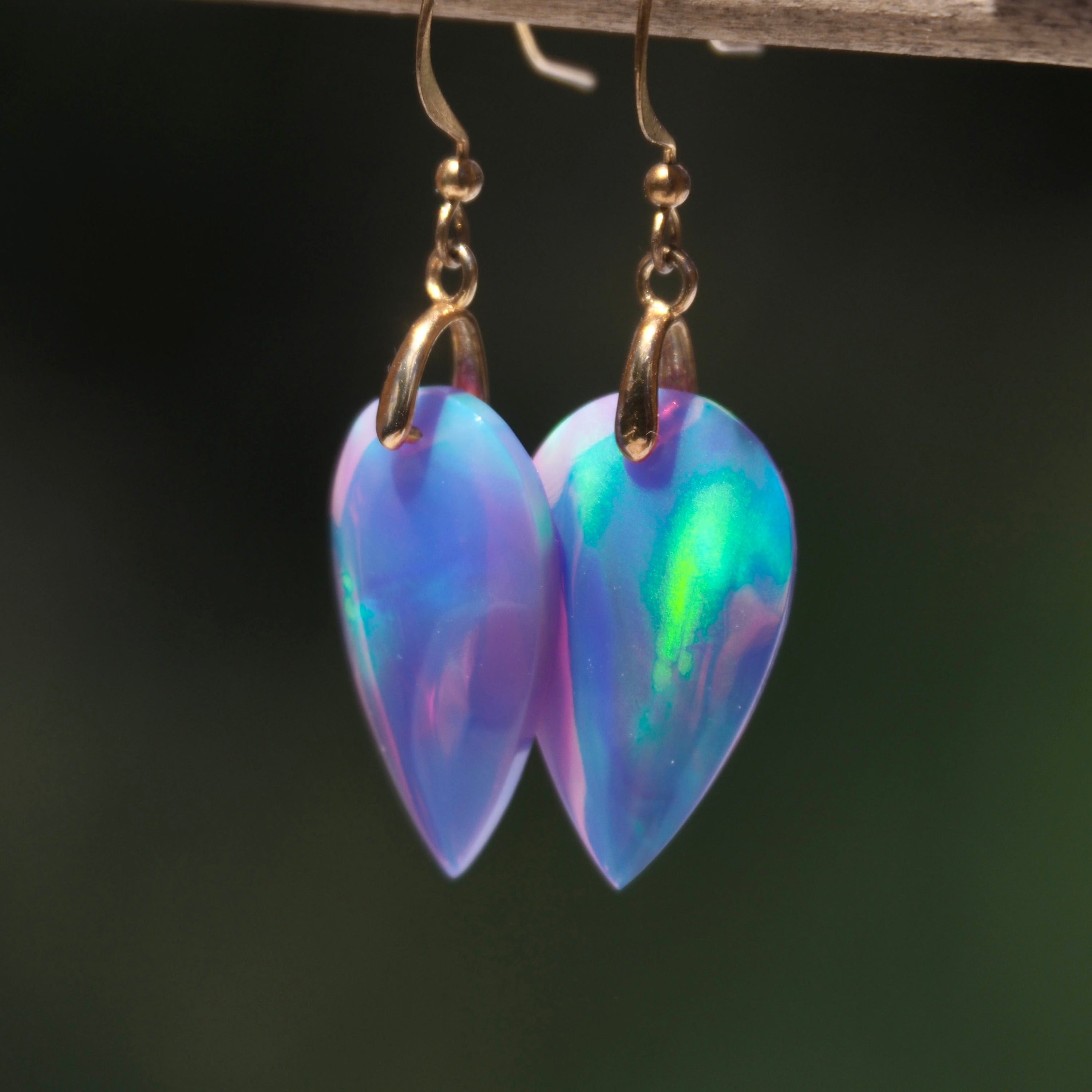Pièce unique #023 - Boucles d'oreilles en Opale de laboratoire couleur lavande