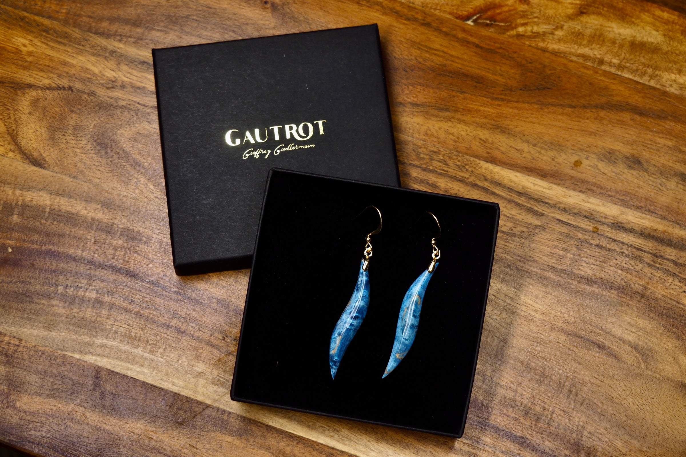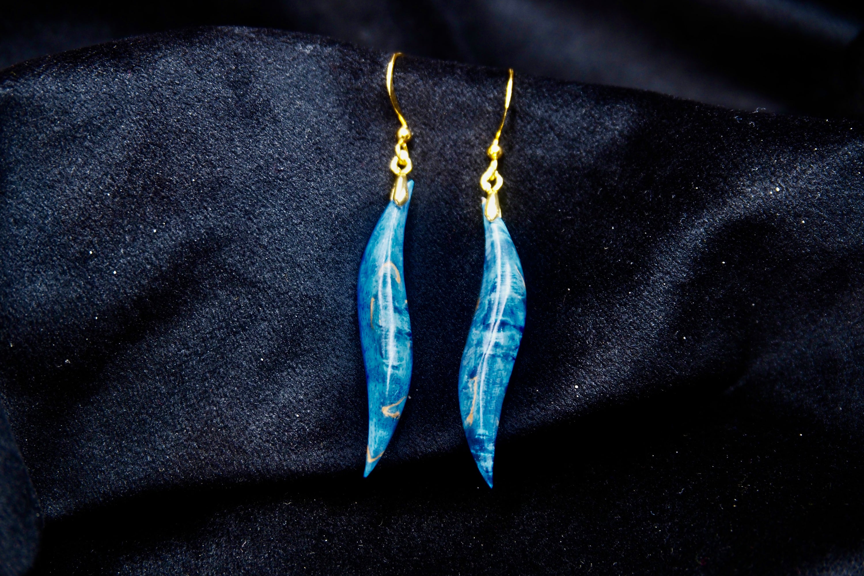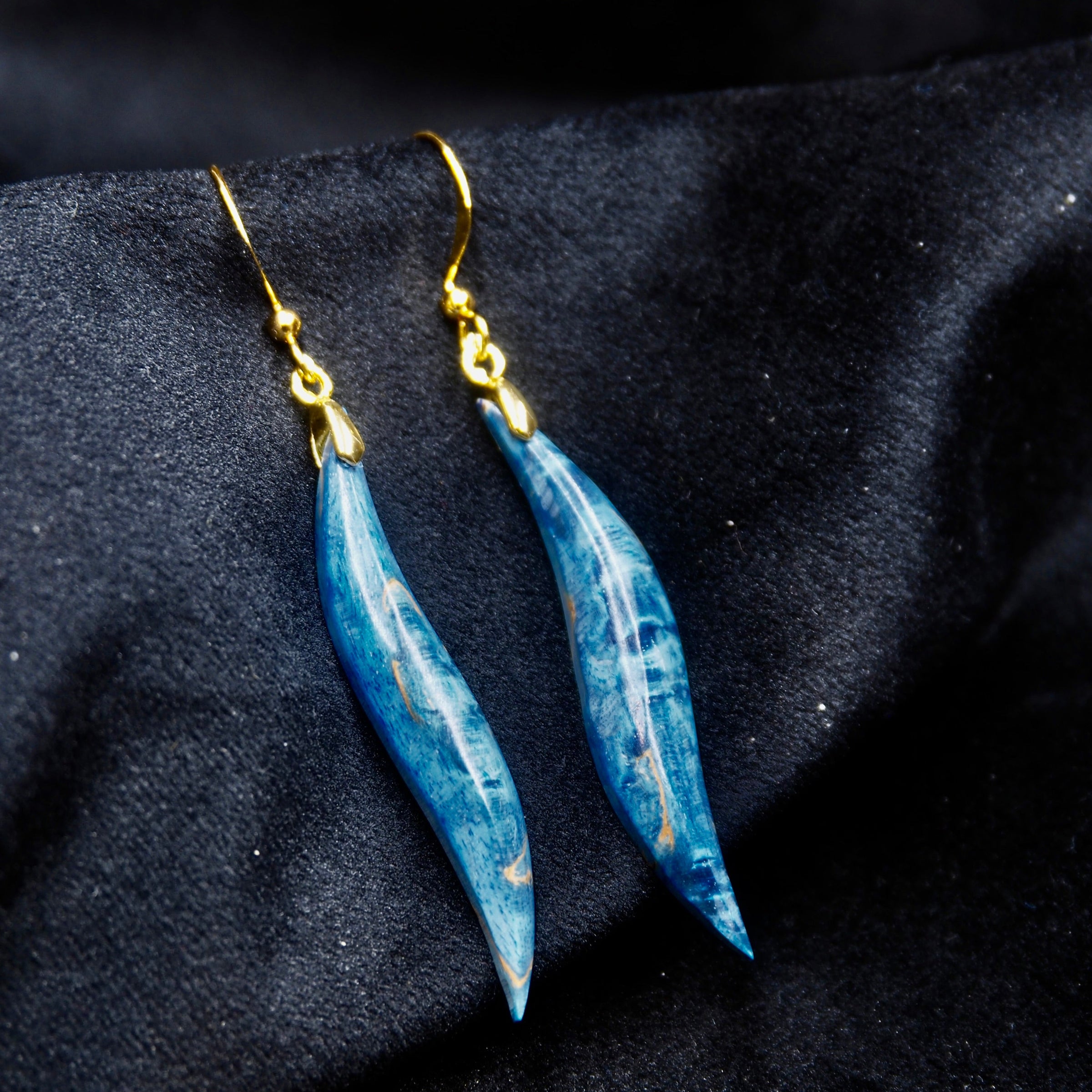 Pièce unique #022 - Boucles d'oreilles en bois stabilisé bleu