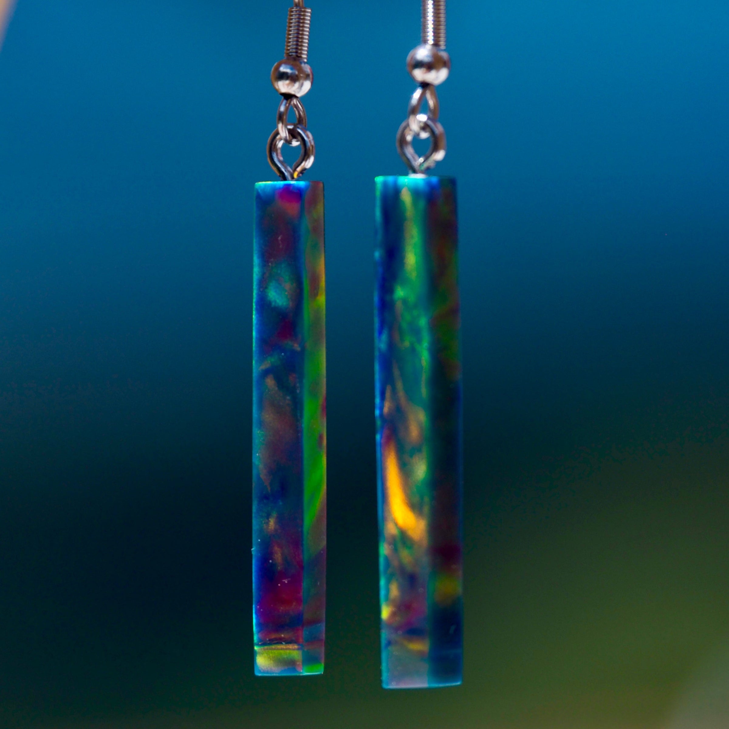 Pièce unique #021 - Boucles d'oreilles en Opale de laboratoire multicouleur
